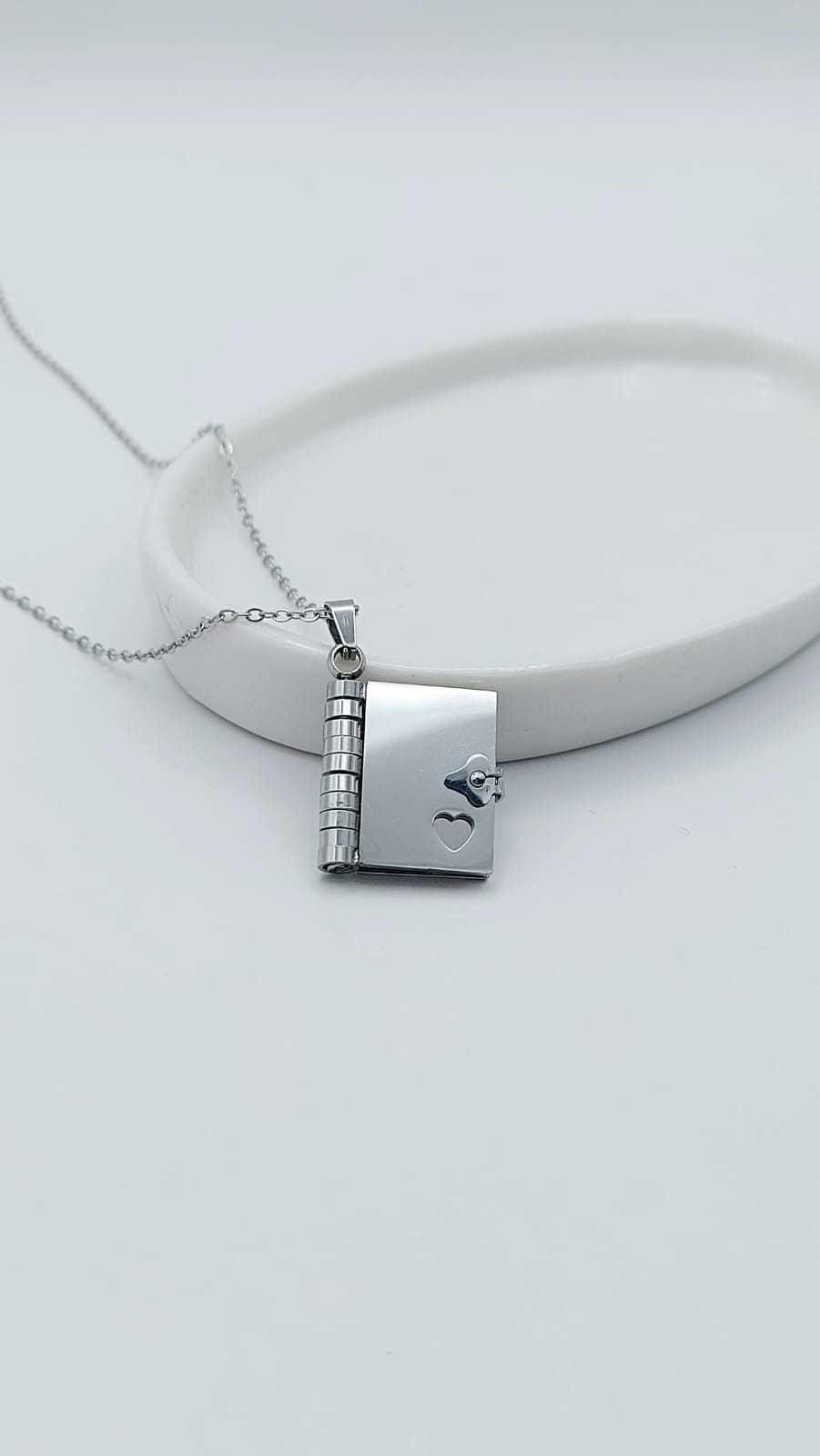 Este collar puede personalizarse con grabados de frases especiales, fechas, o un pequeño dibujo en 4 paginas, convirtiéndolo en un detalle único y totalmente personal.