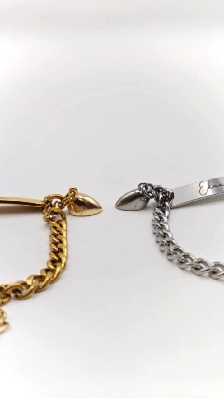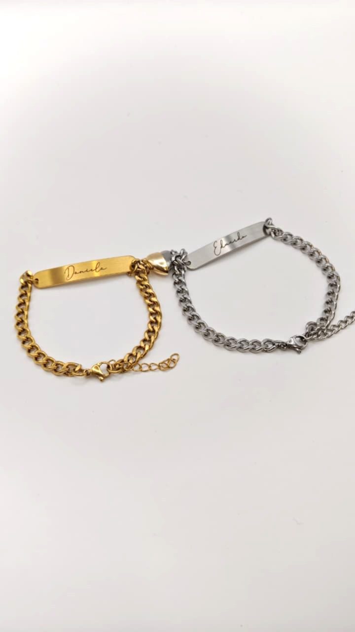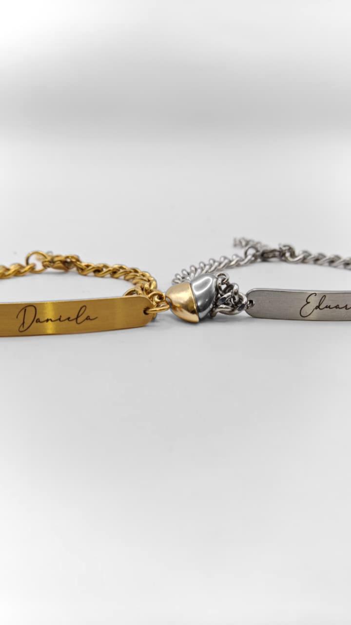 PULSERAS DUO CORAZÓN BARRA GRABADA